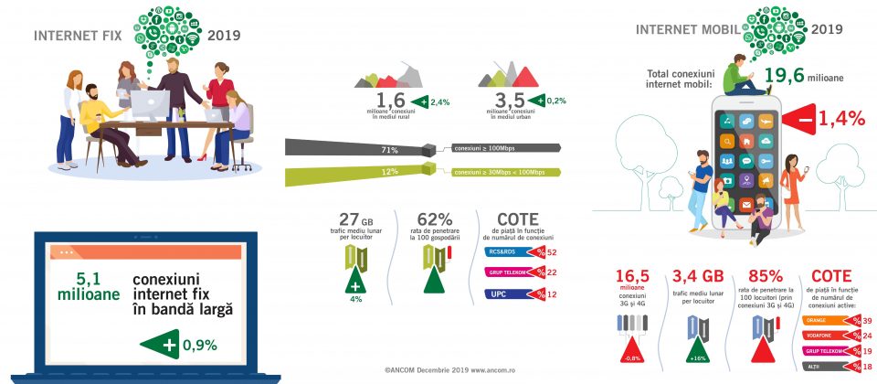Autoritatea Naţională pentru Administrare şi Reglementare în Comunicaţii (ANCOM) a publicat câteva statistici interesante pentru internetul mobil şi fix din România valabile pentru jumătatea anului 2019: