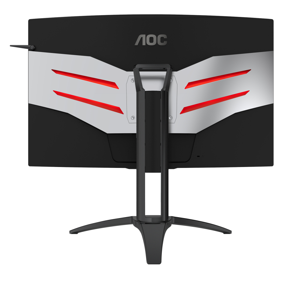 AOC AGON AG322QC4 vine cu un design lucios, în nuanțe de negru închis, iar aspectul curbat permite distanța egală dintre ochi și fiecare colț al monitorului, printr-un unghi perpendicular ce elimină distorsiunea imaginii, a contrastului accentuat sau a neclarității culorilor cauzate de un unghi oblic.