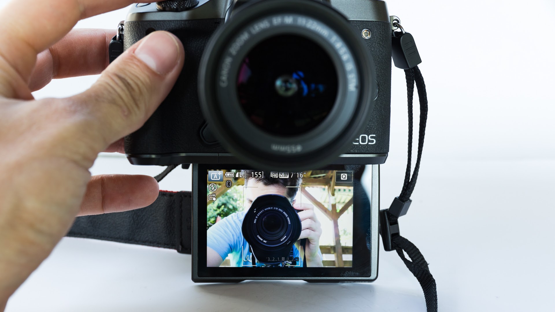 Ecranul rabatabil la 180 de grade în jos îți dă posibilitatea de a face fotografii selfie perfect încadrate: