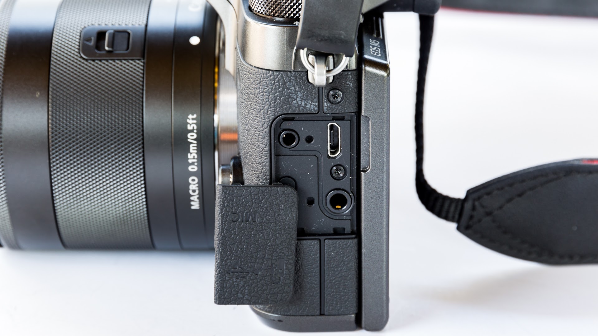 Cu toate că este un aparat foto de dimensiuni compacte, Canon EOS M5 a reușit să integreze mai toate elementele importante de conectivitate. Avem Wi-Fi 802.11 b/g/n, NFC și bluetooth 4.1 fără a conecta vreun cablu, iar prin contact direct avem la dispoziție microUSB, microHDMI tip D și jack de 3.5 mm pentru microfon extern stereo.