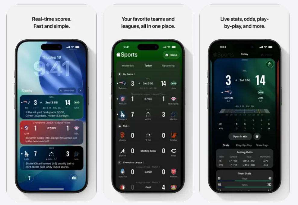 Cu aplicația Apple Sports, obții scoruri sportive în timp real, programe, statistici și cote de pariuri, acum chiar şi în limba română.