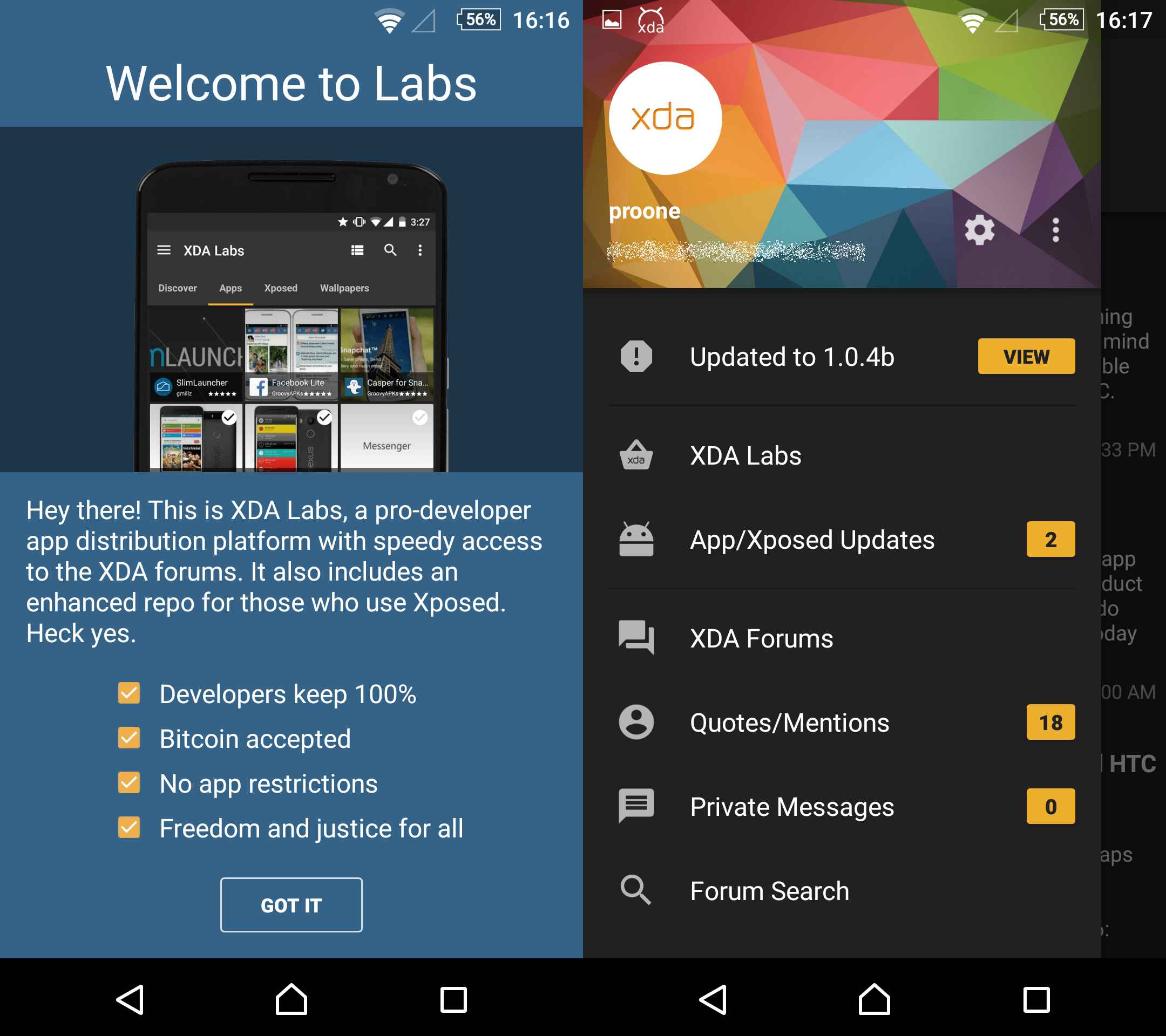 Comunitatea XDA Developers a lansat o nouă aplicație Android numită XDA Labs. Deși comunitatea dispunea deja de o aplicație Android dedicată forumului, aceasta era una destul de limitată, accesul rezumându-se la forum în același fel în care Tapatalk tratează majoritatea siteurilor.