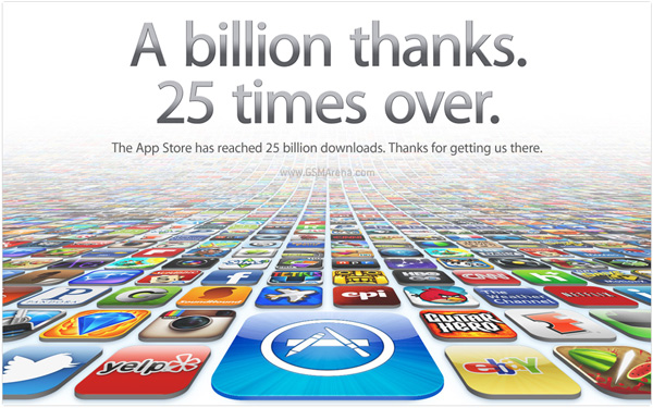 Această cifră dovedeşte faptul că Apple are cel mai mare şi mai accesat magazin de aplicaţii din lume. Pentru a mulţumi utilizatorilor, Apple a pus la bătaie un cupon de 10.000 de dolari, cupon ce va fi acordat persoanei care a descărcat aplicaţia cu numărul 25 de miliarde. Numele persoanei va fi anunţat cât de curând de către cei de la Apple.