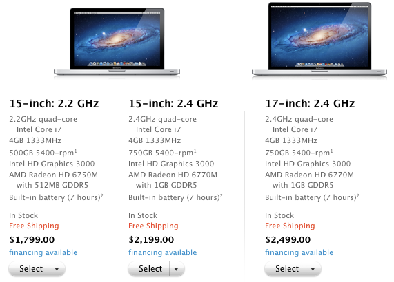 MacBook Pro de 17 inch primeşte un quad-core la 2.2 GHz cu i7 şi 2.4 GHz i7. Există şi o noutate la placa video sau grafică: AMD Radeon HD 6770M.