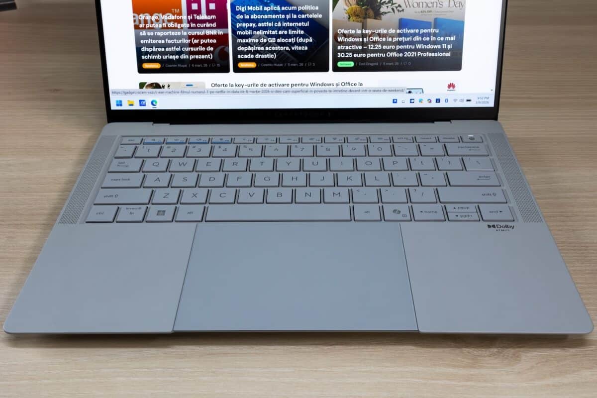 Am remarcat că menține temperaturile destul de bine sub control. Asta și pentru că are o răcire bine pusă la punct, deși discutăm despre un laptop cu greutatea de 1 kg, iar sunetul generat de răcire nu mi s-a părut deranjant.
