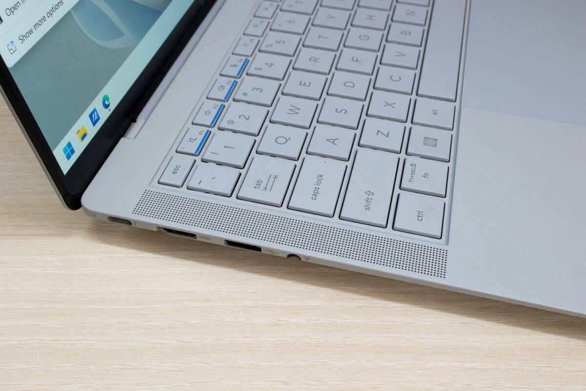 Ai parte de un port Thunderbolt 4 și altul de tip USB USB 3.2 Type-A Gen2 pe lateral dreapta, iar pe stânga au adus un alt port Thunderbolt 4, altul de tip HDMI 2.1, un alt USB 3.2 Gen2 Type-A și jack-ul combo de 3.5 mm.