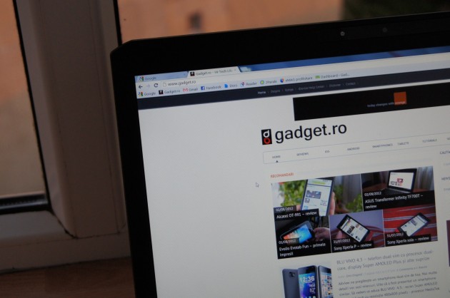 În lateral dreapta regăsiți: jack-ul pentru încărcător, VGA, RJ-45 pentru cei care nu au un router pe acasă, HDMI, 2 x USB 3.0. Pe stânga sunt poziționate: 2 x USB 3.0, blu-ray player, cititorul de carduri SD, 2 x jack de 3.5 mm pentru microfon și ieșire audio / căști. Nu-i lipsește nimic.