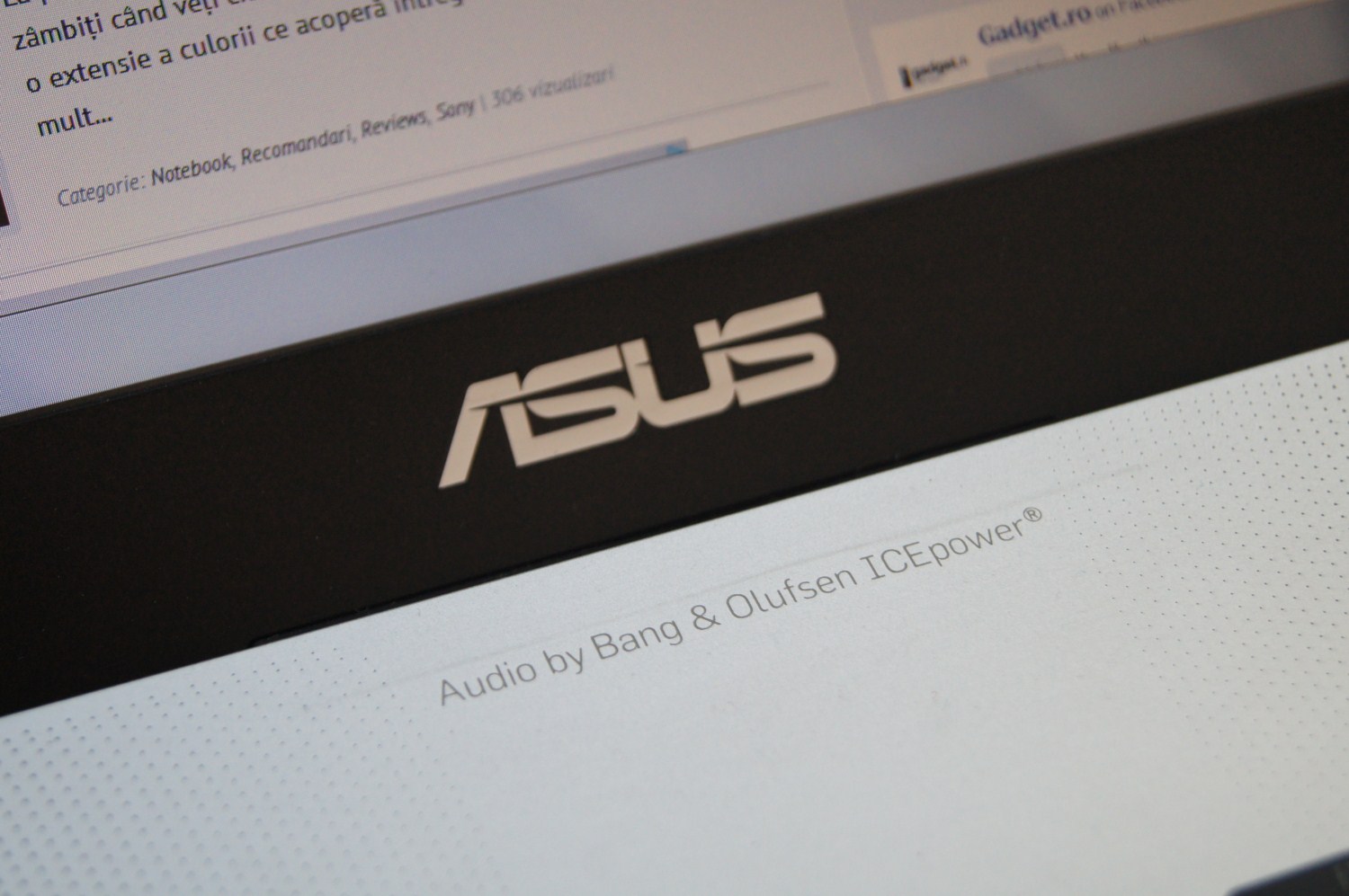 Mi-a dat impresia că se putea face o tastatură mai puțin înghesuită. Am uitat să precizez că pe capacul ecranului este stilizat logo-ul ASUS, la fel și la baza ecranului. M-a uimit lipsa stickerelor care să anunțe Windows 7, Intel Core i7 sau cine știe ce alte tehnologii pe care un producător vrea să le scoată în evidență.