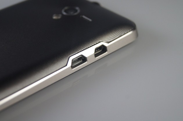 Logo-ul ASUS în partea frontală a fost poziționat la bază, majoritatea îl pun în partea superioară. În timp va deveni un reper și te va ajuta să-l manevrezi cu ușurință în poziția dorită. La ASUS Padfone mi-a plăcut atenția la detalii, controalele de pe margine nu sunt lăsate la întâmplare, locaș pentru a deschide capacul din plastic de pe spate ce acoperă bateria telefonului și slotul pentru SIM de dimensiune normală + microSD de până la 32 GB.