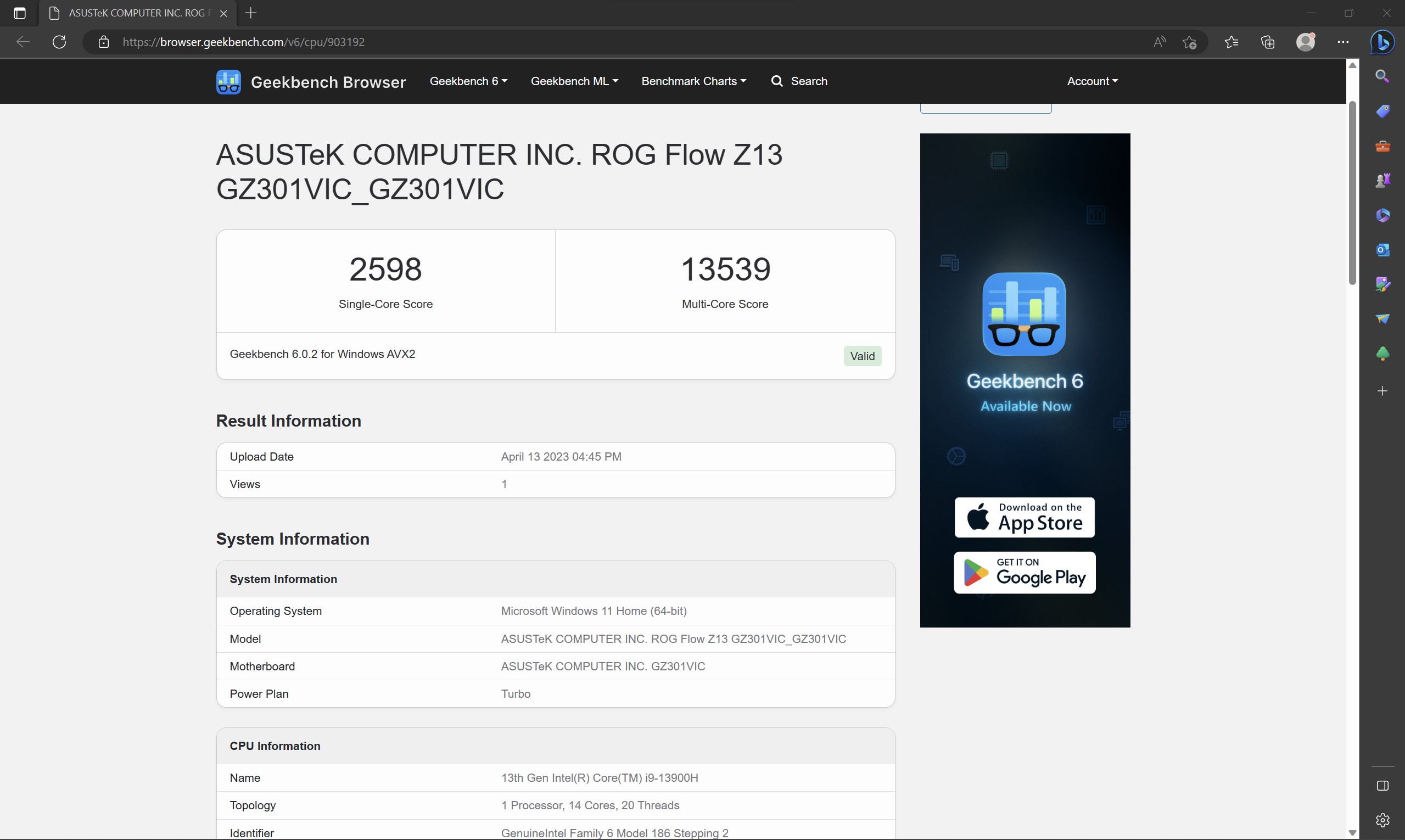 | Teste 2D | ASUS ROG Flow Z13 (2023) |