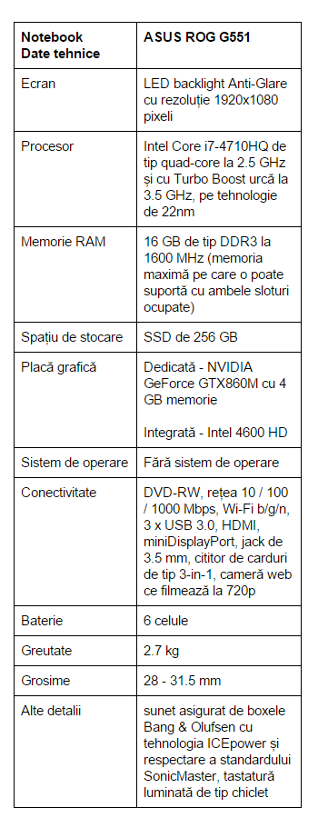ASUS ROG G551JM în configurația testată – 4900 lei la ITgalaxy.ro.