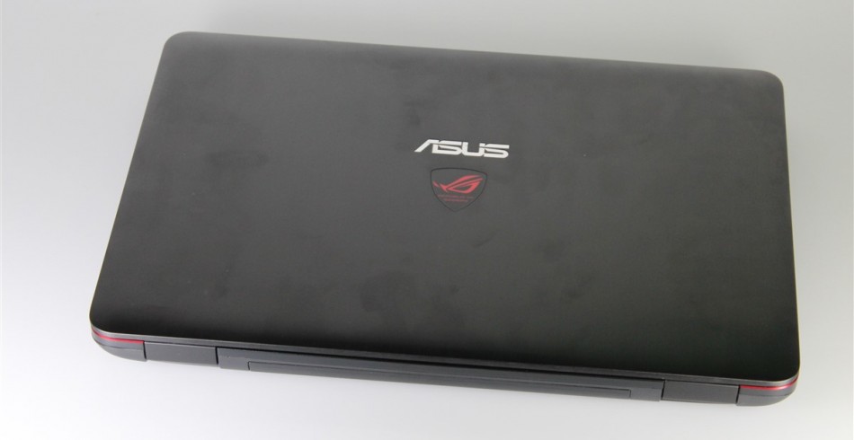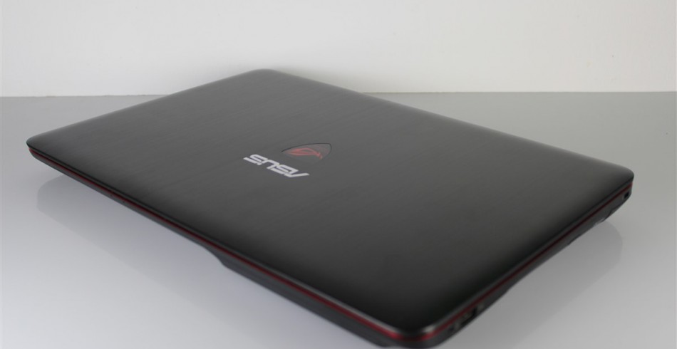Cu laptopul închis se remarcă logo-ul ROG / acronim de la Republic of Gamers, log care atunci când notebook-ul este pornit se aprinde în roșu + sigla ASUS argintie la loc de cinste. Apreciez folosirea aluminiului la capacul spate, dar și la zona ce înconjoară tastatura + baza unde-ți odihnești palmele, baza lui G551 fiind îmbrăcată într-un plastic negru. Culorile predominante: negru și roșu folosind spre a-i da o tentă aparte.