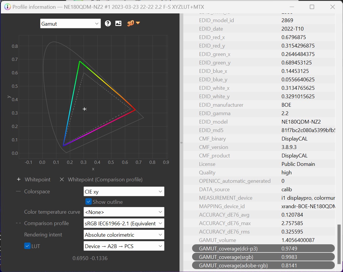 Când vine vorba de culori, spațiu de culoare, pot spune că ecranul este bun, avem un gamut bogat. Avem 99,8% SRGB, 81,4%Adobe RGB, 97,5% DCI-P3. Ideal și pentru muncă serioasă, nu doar gaming. De fapt, pentru gaming nici nu este nevoie de un gamut atât de mare, este clar că target-ul laptop-ului este mult mai mare, mergând spre editori foto-video, creatori de conținut etc.