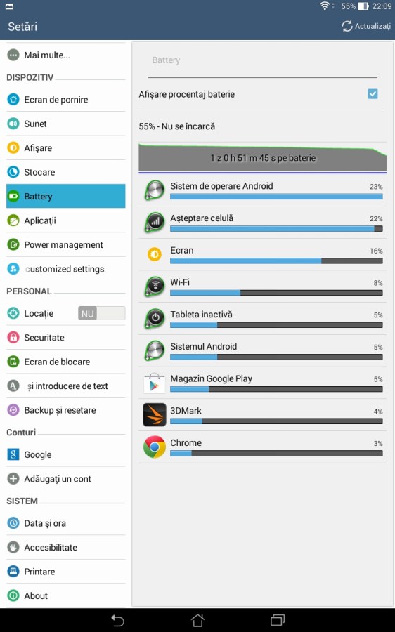 PowerSaver – mod de folosire a tabletei și de setare a unor elemente spre a avea un plus de autonomie;