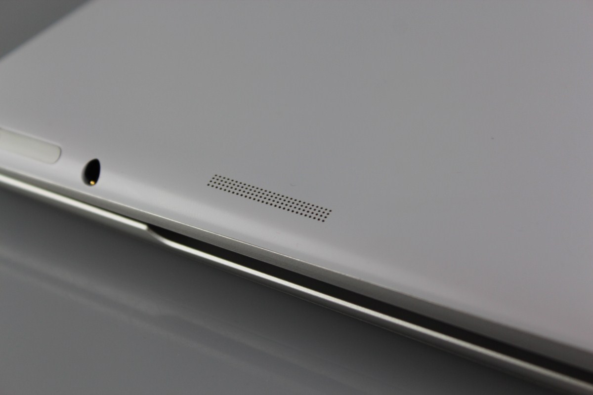 Pe partea de sunet sunt două speakere situate în lateral stânga și dreapta, cu tableta în mod landscape. De aici și un efect stereo interesant. Livrează un sound puternic, bine calibrat, fără a transmite vibrații în carcasă, chiar și la nivel maxim. Jack-ul de 3.5 mm a fost dispus în lateral dreapta, iar reglarea volumului se face de la o tastă poziționată în lateral stânga / de fiecare dată iau în calcul, tableta în mod landscape.