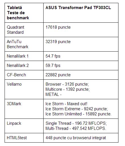A trecut prin câteva teste de benchmark, iar rezultatele obținute le-am structurat în tabel: