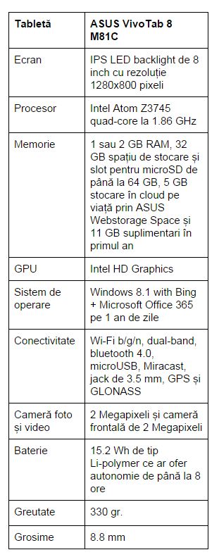 Ideea ar fi că ASUS cu VivoTab 8 în versiune M81C și-a propus mai degrabă să aducă experiența Windows 8.1 către un public mai vast. Prețul său urmează a fi situat sub pragul a 200 de euro și se dorește a fi o tabletă de volum cu software gândit de Microsoft.