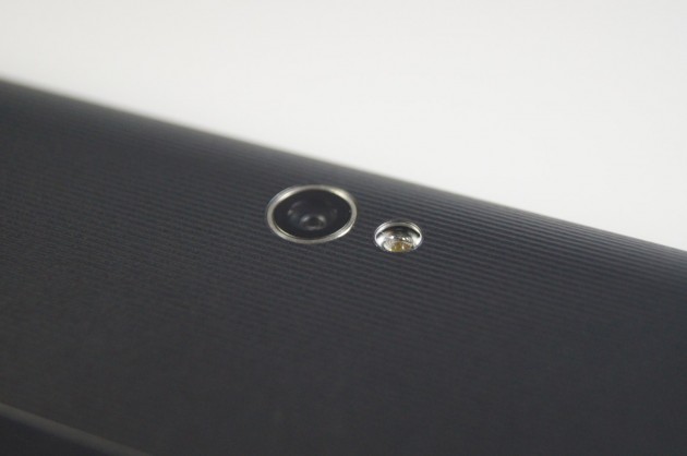 Pe spate dați de un alt logo ASUS metalic dispus central, senzorul camerei de 8 Megapixeli cu LED flash. Materialele alese mi-au dat impresia de rezistență în timp și la zgârieturi. Plus că impresia de tabletă ușoară s-a menținut de-a lungul celor șapte zile în care am avut ocazia să o utilizez.
