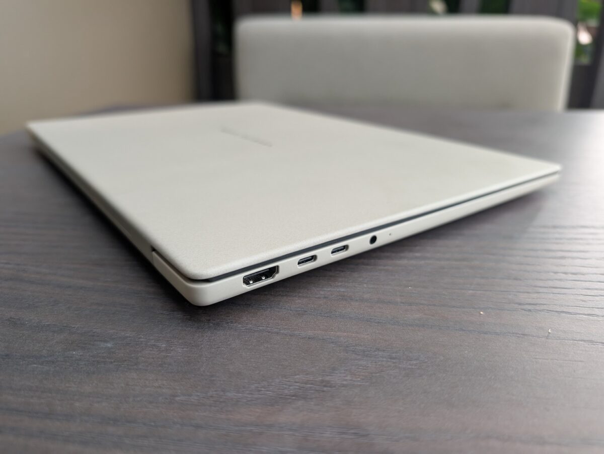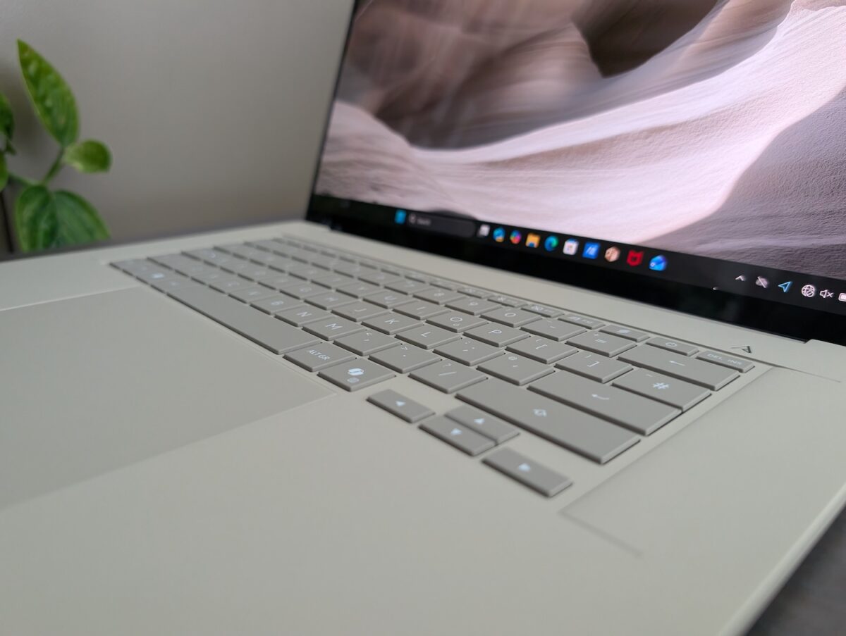 Și aici este folosit ceraluminiu ce contribuie și la partea de rigiditate. Greutatea coboară sub…, 1 kg. Au integrat procesorul Qualcomm Snapdragon X2 Elite cu 18 nuclee, AI precum am notat mai sus etc.