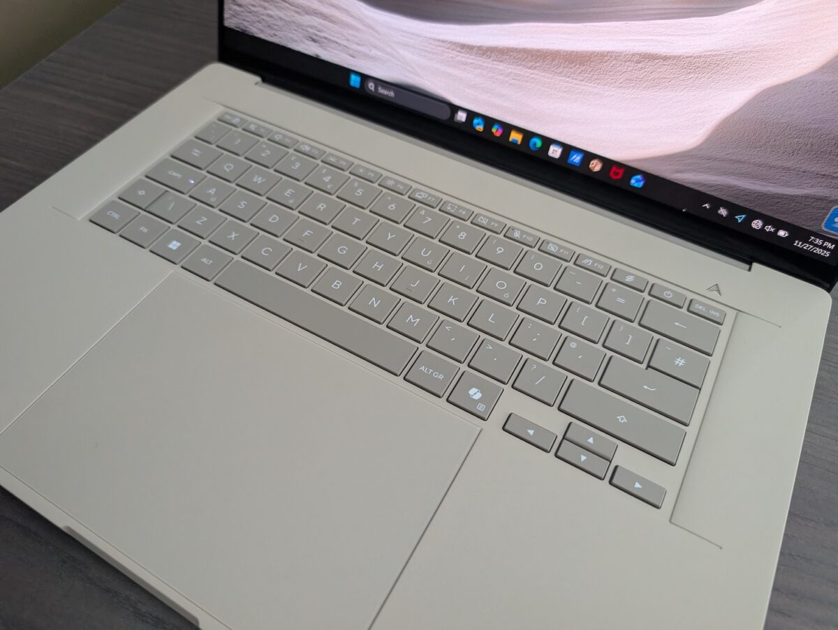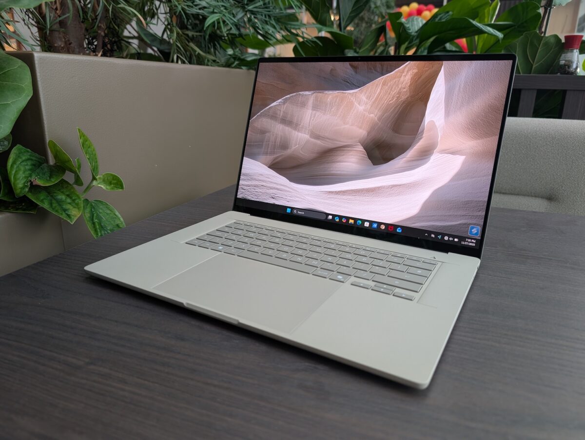 Autonomia ajunge la 35 de ore de video offline. Difuzoarele au certificare Dolby Atmos, iar răcirea cade în sarcina a două ventilatoare din aliaj special de aluminiu. Se punctează și la partea de silențiozitate – până la 25 dB în sarcinile ușoare.
