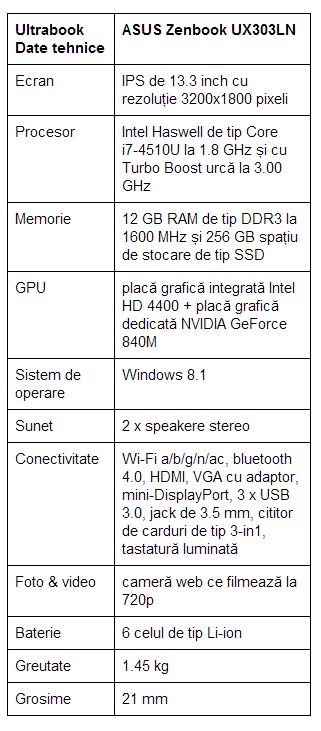 ASUS UX303LN se adresează celor care doresc performanțe fără compromis într-un corp compact și pe un display cu rezoluție de-a dreptul fabuloasă, 3200×1800 pixeli. Urmează a debuta în țara noastră din această vară, iar lista de prețuri o găsiți structurată în capitolul dedicat. Apropo, oare de ce nu mă mir că ultimul laptop testat a sosit tot de la compania taiwaneză / ASUS Zenbook UX302.
