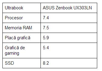 1. ASUS Zenbook UX303LN cu display tactil și rezoluție 3200×1800 pixeli, Intel Core i7-4510U, placă grafică dedicată NVIDIA GeForce 840M, 12 GB RAM și SSD de 256 GB – 5500 lei;