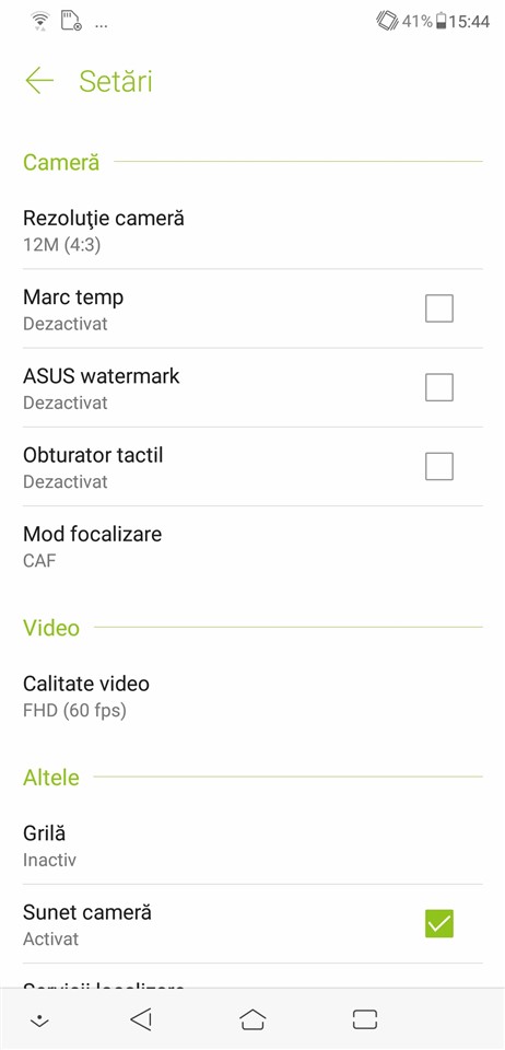 Galerie cu capturi de ecran din interfața ASUS Zenfone 5: