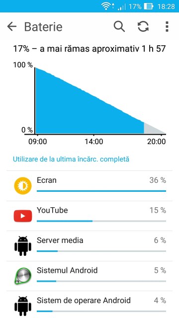 Într-o utilizare medie, ca cea din cazul meu, cu câteva minute de convorbiri pe zi, cu multe mailuri, mult navigat pe net, ceva YouTube, câteva minute de jocuri și un strop de Facebook, ASUS Zenfone Max a rezistat mereu peste 2 zile și jumătate. De departe cel mai bun smartphone la capitolul autonomie pe care l-am testat.