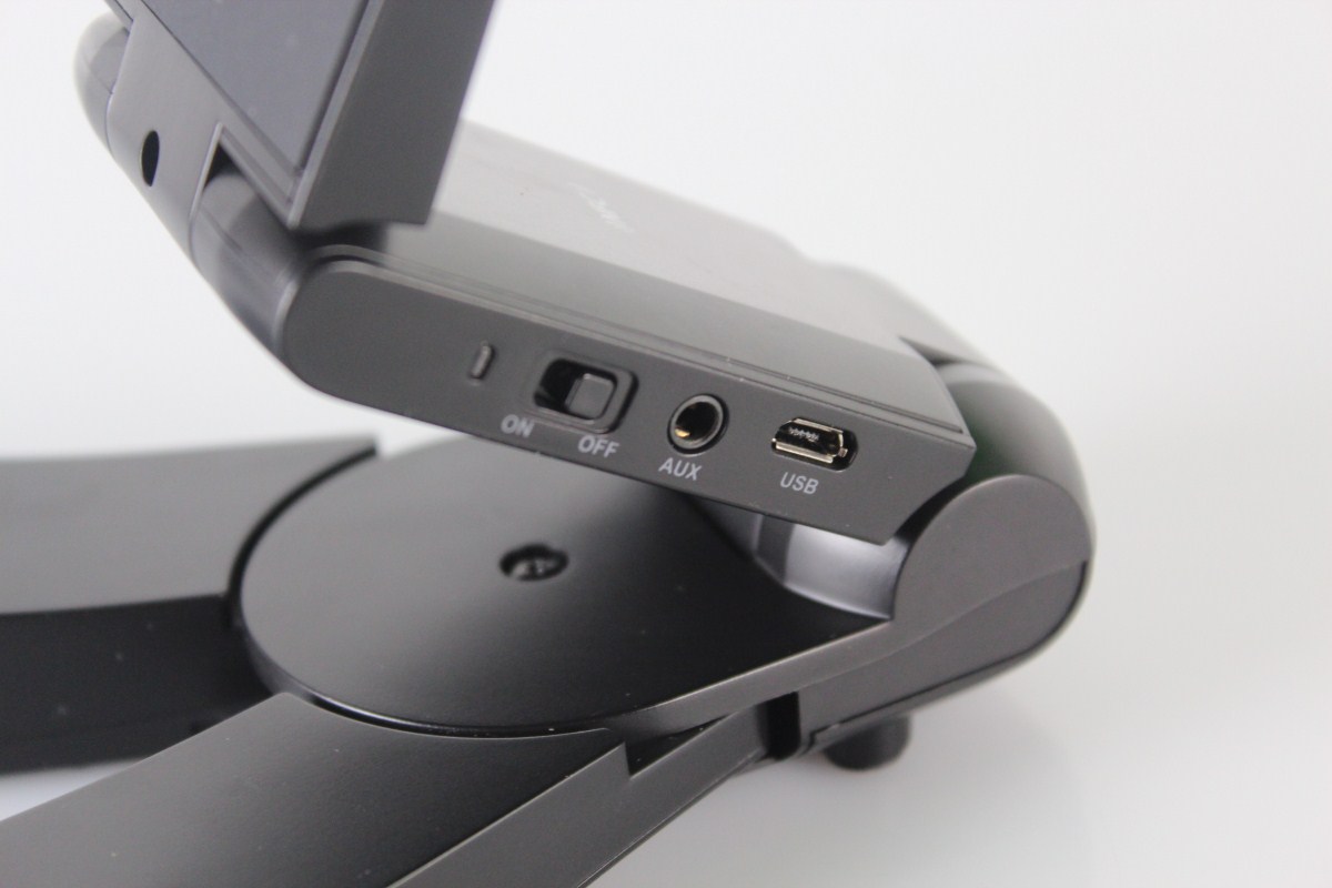 2 x 2.5W RMS și difuzoare de 30mm. Există posibilitatea de a conecta standul prin bluetooth la tabletă sau prin jack-ul de 3.5 mm inclus în pachet. Are un buton lateral de power. Îl pui în poziția on, iar Avantree Standola este vizibil pentru celelalte dispozitive cu conectivitate bluetooth.