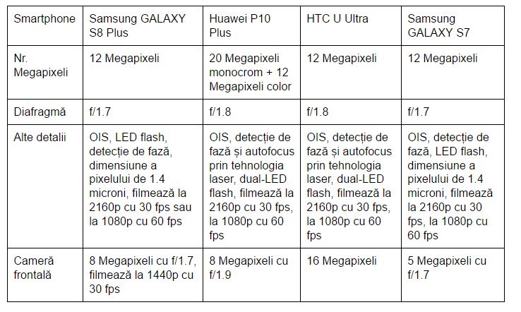Ultimul articol de acest fel a fost realizat în 2016 și era legat de LG G5, Samsung GALAXY S7, Huawei P9 și iPhone 6s. Acum avem pe masa de test: Samsung GALAXY S8 Plus, Huawei P10 Plus, HTC U Ultra și Samsung GALAXY S7.