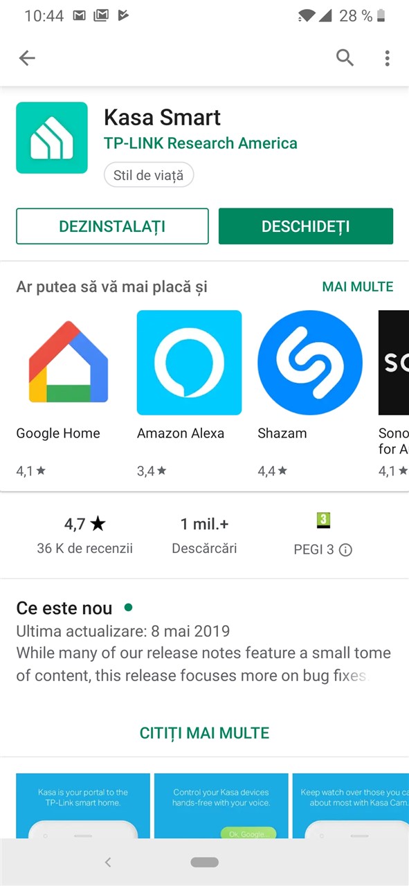 Poți trece apoi la configurarea funcțiilor smart. Pentru asta în primul rând trebuie să descarci și să instalezi aplicația TP-Link Kasa Smart, disponibilă gratuit atât în Google Play Store, cât și în Apple App Store. Compatibilitatea aplicației este de la Android 4.1 sau iOS 8 în sus.
