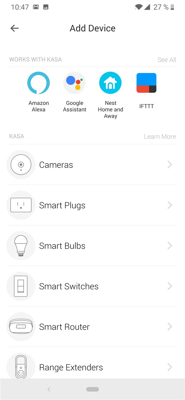 Trebuie mai departe să începi a adăuga produse TP-Link compatibile cu această aplicație. În cazul becului TP-Link LB120 trebuie să alegi din listă mai întâi ”Smart Bulbs”, apoi modele din seria KL50-130/LB100.