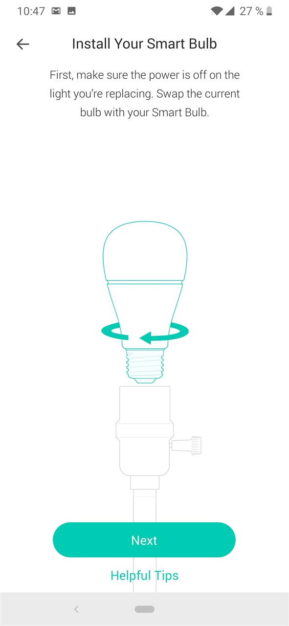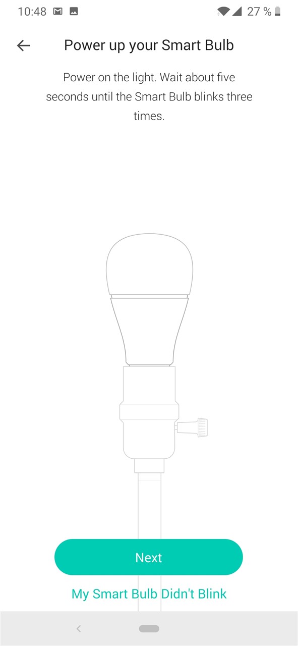 Următorul pas este să pornești becul din întrerupătorul clasic, spre a primi curent. Becul se va aprinde intermitent de 3 ori, moment în care vei știi că este gata de a fi configurat. În cazul meu becul mai fusese instalat, așa că a fost nevoie de un reset. Cu becurile noi acest pas nu va exista.