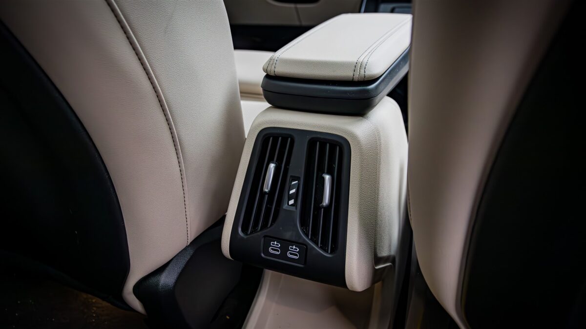 Una dintre ele este cotiera frontală, ce pare că plutește deasupra consolei centrale joase. Impresia este valabilă doar din perspectiva șoferului, pe cealaltă parte (de pe scaunul din dreapta) se observă elementul de susținere ce nu lasă cotiera să se sprijine doar într-un punct.