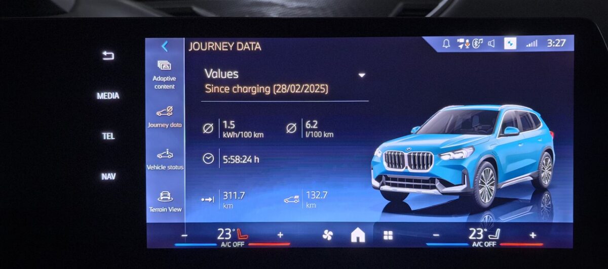 Interfața sistemului de infotainment de pe BMW X1 xDrive30e (2024):