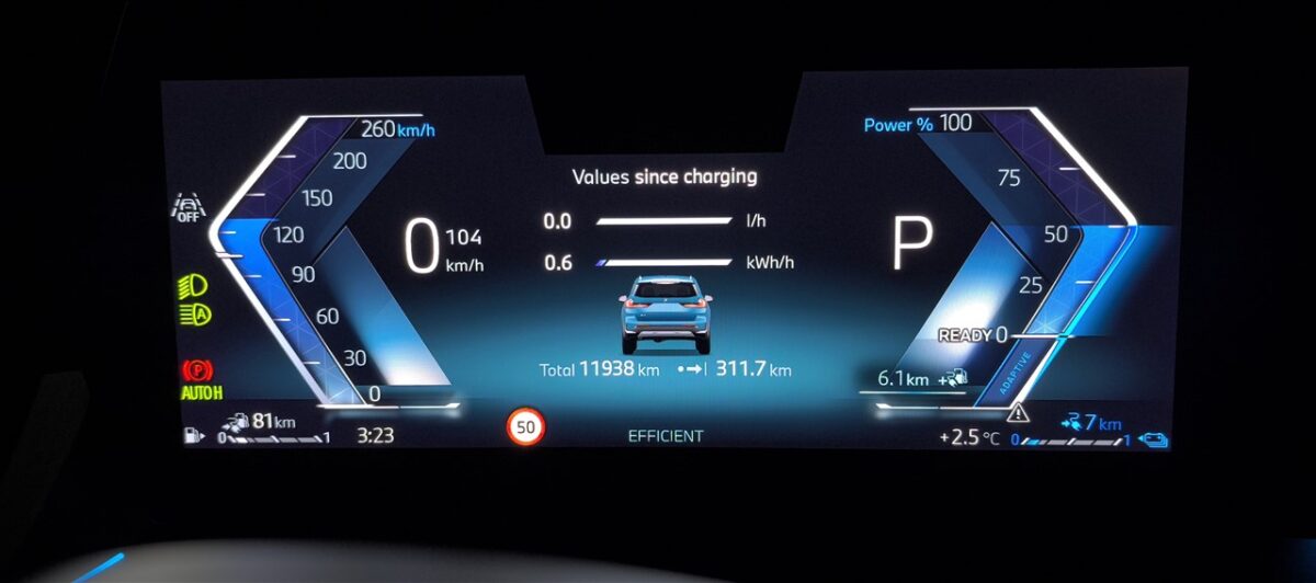 Consumul oficial, așa cum se întâmplă la orice PHEV din cauza metodologiei de stabilire impusă prin normele WLTP, este ireal. Nu poți atinge consumul mediu oficial de 0.9 litri de benzină pentru 100 de km decât dacă pleci cu bateria plină, mergi foarte economic și rulezi strict 100 km. Cel puțin aceasta este părerea mea.