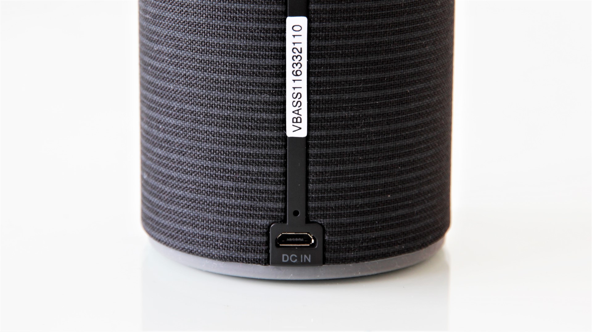 Sunetul este redat prin partea superioară, și aceasta acoperită cu material textil. De această data materialul este de culoare neagră, spre deosebire ce cel care îmbracă mare parte din boxă și care este predominant gri, cu un model în dungi orizontale.