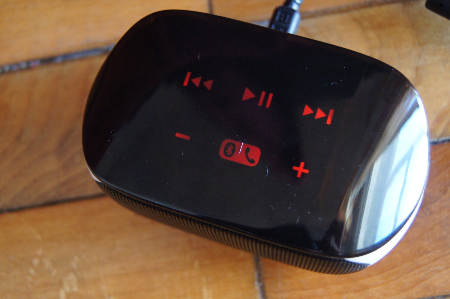 Sunt 6 controale în partea superioară de tip capacitiv. Acestea sunt pentru reglarea volumului: + și -, activare bluetooth și răspuns la un apel, în primul rând. Al doilea rând aduce navigarea printre melodii, play și stop.