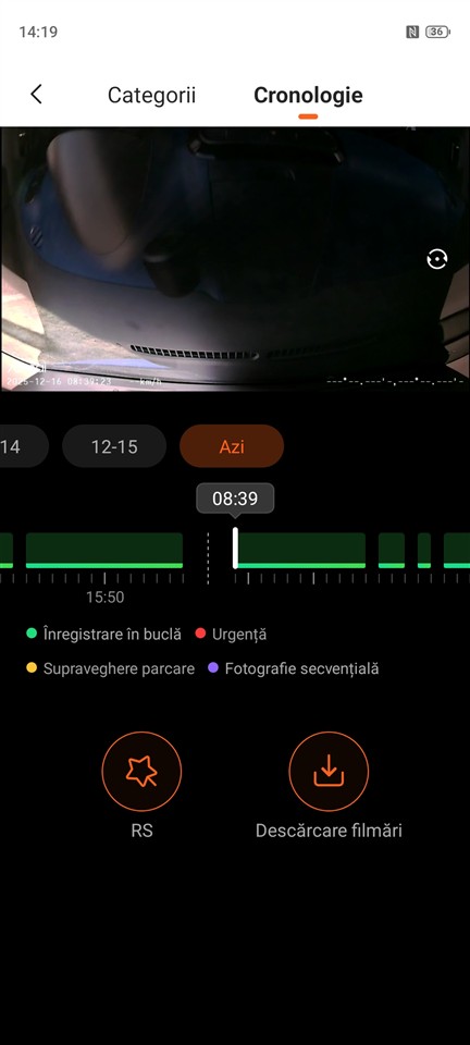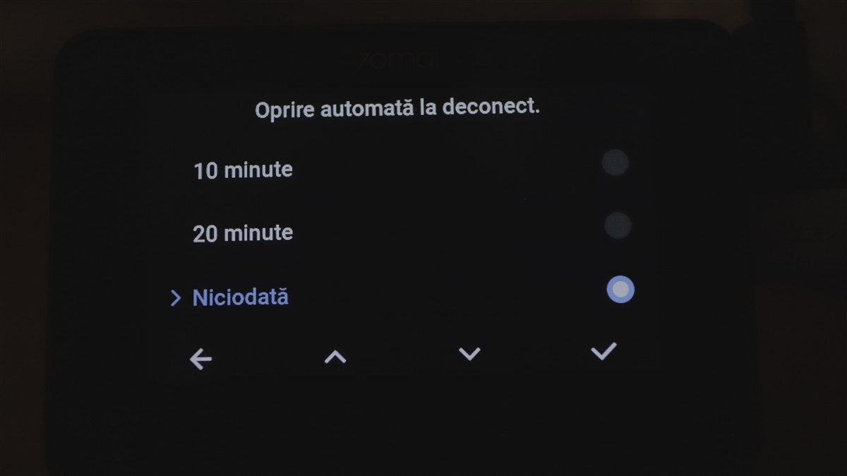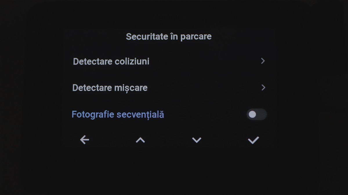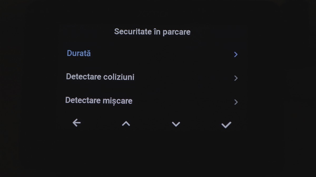Apropo de acesta, el permite înregistrare continuă sub formă de time lapse, dar eu consider că cea mai bună opțiune pentru modul parcare este cea care înregistrează doar atunci când apare mișcare în cadru ori un mic șoc, preluat de senzorul G integrat. Mișcările ce apar în cadru se pare că sunt analizate folosind ceva AI, dar aici nu aș putea să apreciez cel mai bine cât de corect funcționează asta. Înregistrarea va fi stocată și cu câteva secunde înainte de „eveniment” (mișcarea în cadru sau șocul), deci nu va fi pierdut momentul de dinaintea unui posibil eveniment. Este vorba despre cel puțin 10 secunde sau până la 3 minute preînregistrare înainte de eveniment și 30 de secunde după petrecerea evenimentului. Foarte bine și aici ca acoperire a eventualelor evenimente, fără ca asta să însemne înregistrarea continuă, care nu-și prea are rostul.