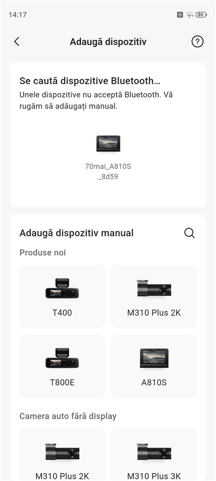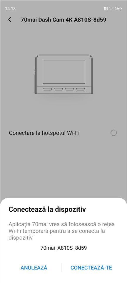 Capturi de ecran din aplicația pentru Android cu camera 70mai A810S: