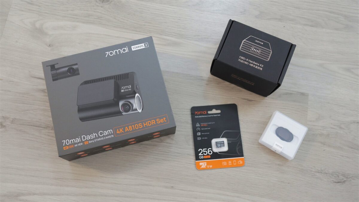 La mine nu a ajuns doar camera 70mai A810S, am primit la pachet și un kit de alimentare pe OBD-II, un filtru de polarizare circulară și un card de memorie microSD 70mai de 256 GB, recomandat pentru camera 70mai A810S.