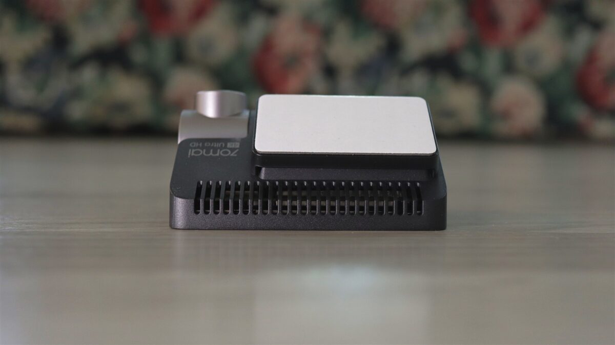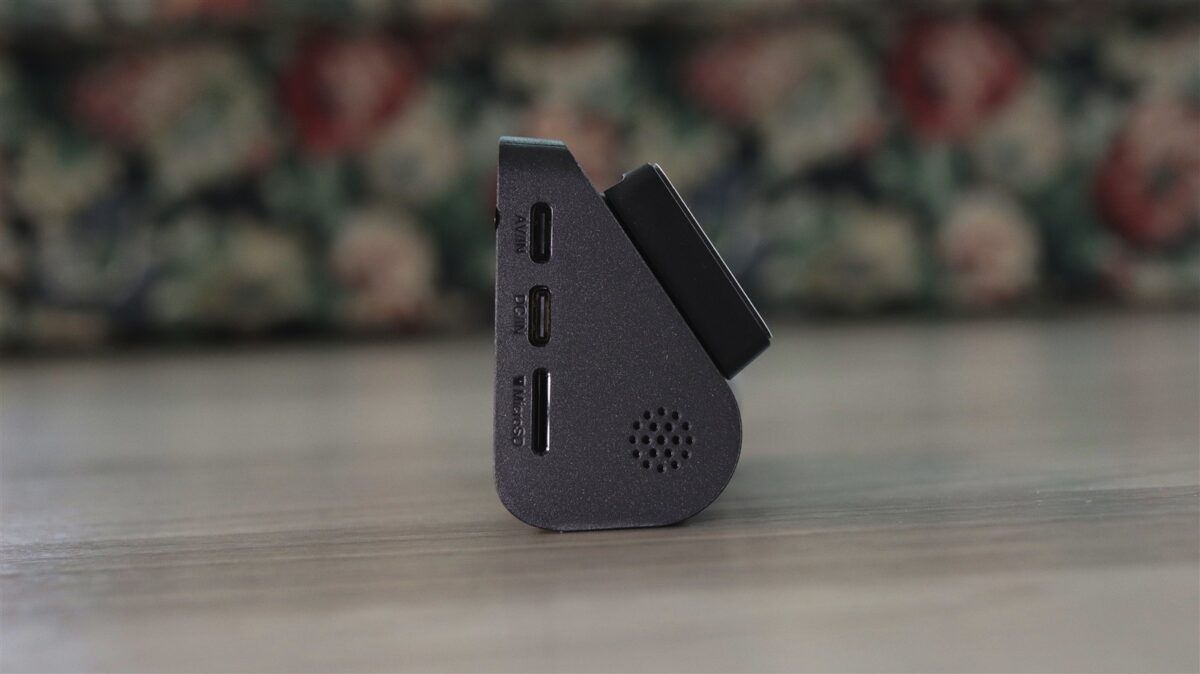 Aparte de micuța grilă a difuzorului integrat, cea de pe laterala din dreapta (cu ecranul spre noi), camera mai are grile de aerisire pe mai toate celelalte laturi, un prim semn al performanțelor 70mai A810S.