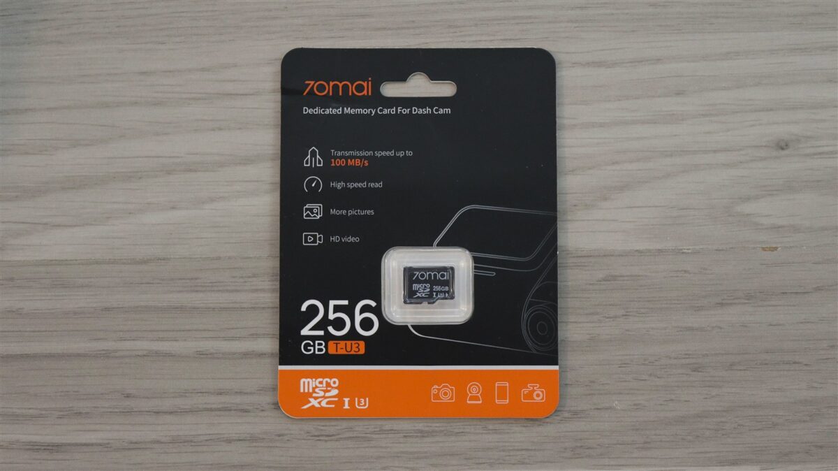 Nu în ultimul rând, avem la test și un card de memorie microSD de 256 GB, tot de la 70mai, unul recomandat și pentru acest set de camere, care pot capta la o calitate foarte înaltă, deci este nevoie de viteză ridicată la scriere. În același timp, acest card de memorie este mai rezistent în fața temperaturilor foarte scăzute sau foarte înalte, dar și la vibrații și radiații, fenomene des întâlnite la o cameră auto DVR.