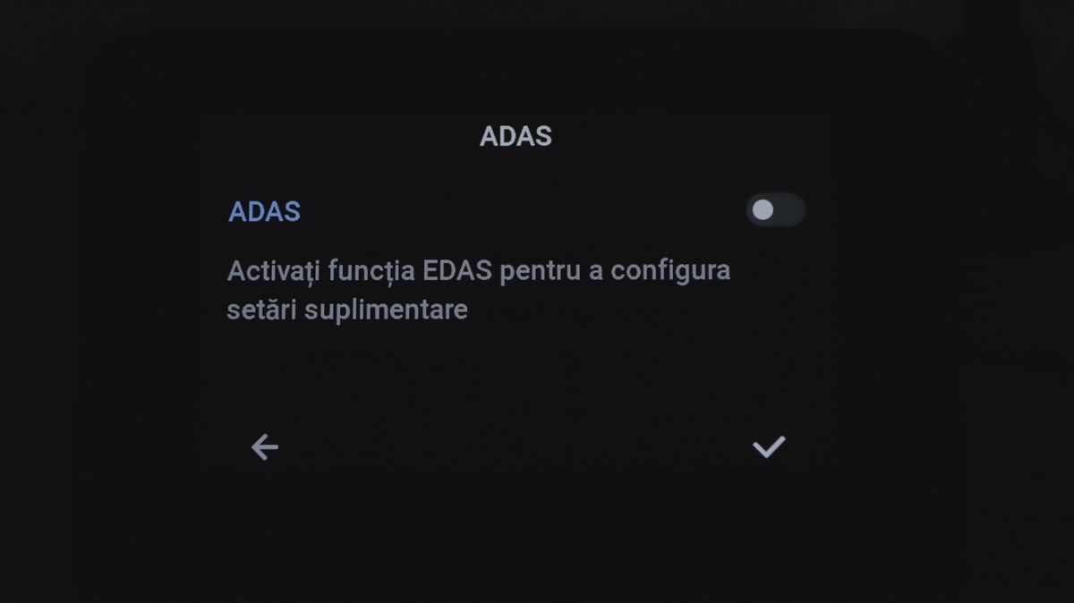 Și aș mai vrea să amintesc, tot ca funcții speciale, de cele cuprinse în suita ADAS. Este vorba despre avertizări la menținerea mașinii pe banda de circulație, de apropierea prea rapidă de un vehicul din față sau orice alt fel de obstacol și altele asemenea. Pentru a fi funcționale funcțiile ADAS (Advanced Driver Assistance Systems) camera frontală trebuie aliniată la linia de demarcaj centrală a drumului și la linia orizontului după niște linii de ghidaj care apar pe ecranul camerei.