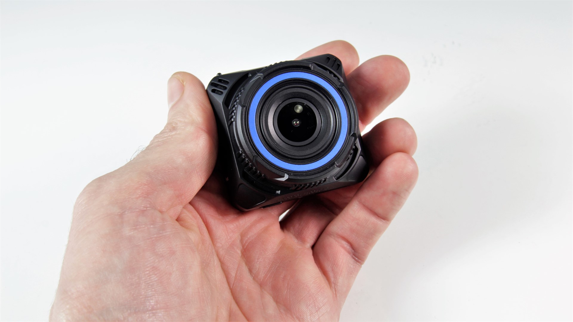 Navitel R600 este una dintre cele mai compacte și ușoare camere auto pe care le-am întâlnit. Abia trece de câte 5 centimetri pe două dintre laturi, pentru ca pe adâncime să măsoare în jur de 3 centimetri. Greutatea, fără suportul de parbriz montat, este și ea extrem de redusă – doar 49 de grame.