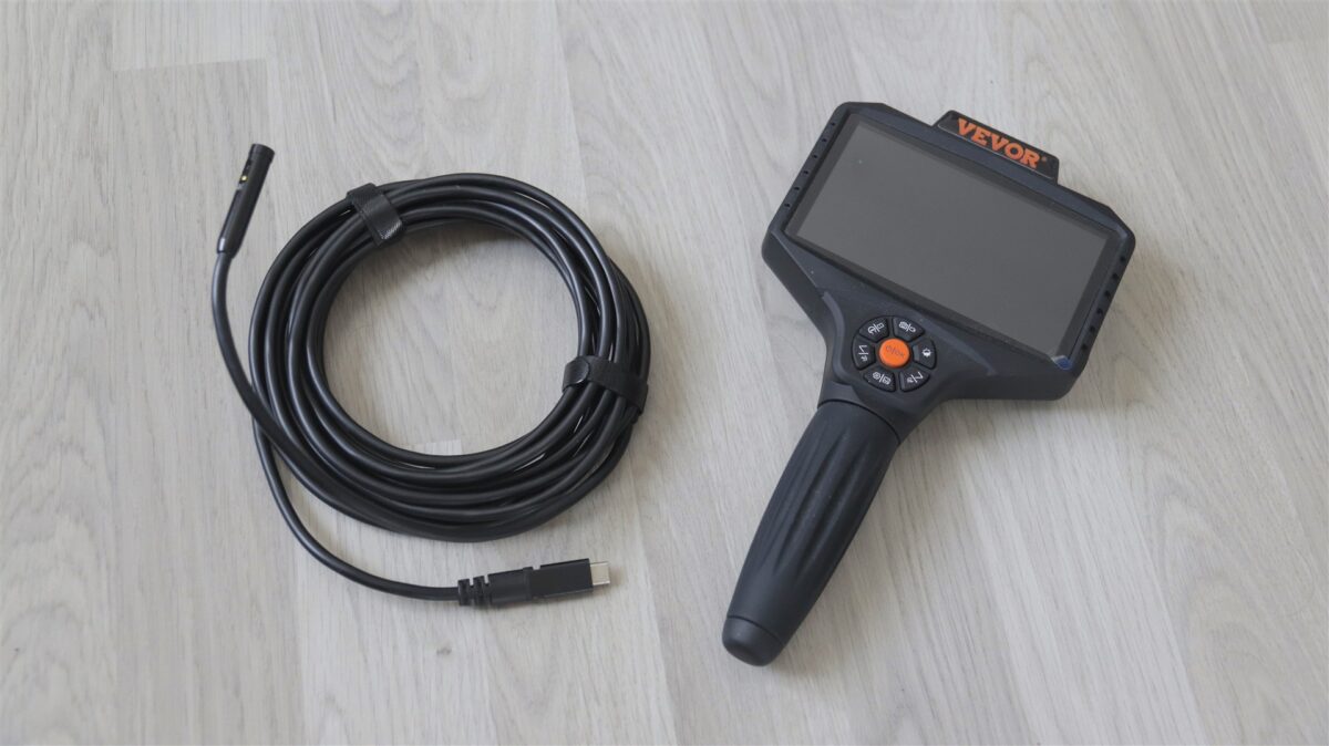 În fine, cei de la VEVOR ne-au trimis un prim produs de test, care este cel pe care îl voi prezenta pe scurt mai departe. Este o cameră endoscopică cu ecran integrat de 5 inch și cu trei senzori de fapt, care acoperă o imagine la 360 de grade. Vedem așadar mai departe ce propune și cum se descurcă VEVOR SC8.