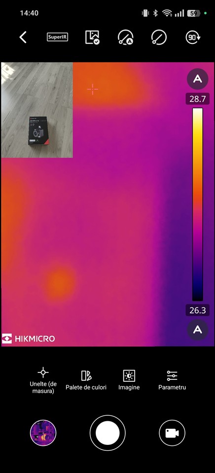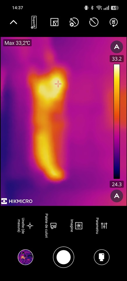 Am descoperit că poți alege să folosești concomitent HIKMICRO Mini2Plus V2 și camera spate a telefonului, astfel ar trebui înțelegi mai bine ce anume este afișat de camera de termoviziune, adică ce corespunde în realitate zonelor reprezentate prin culorile cu semnificație termică. Numai că, unghiul de captură, distanța focală să zicem, este foarte diferită între cele două camere (a telefonului este mult mai wide față de cea a camerei de termoviziune) și inițial trebuie să fii foarte atent spre a înțelege ce este pe ecran. Aș spune că în timp te descurci din ce în ce mai bine.
