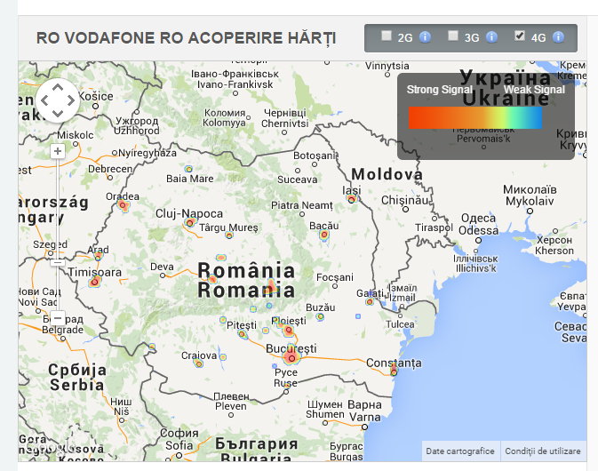 Pe OpenSignal.com am găsit trei hărți detaliate pentru operatorii telecom naționali.