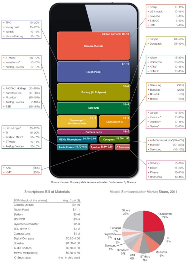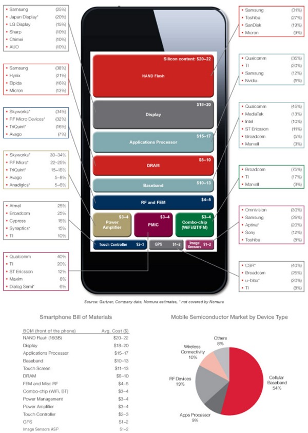V-aţi întrebat vreodată din ce este format un smartphone? Sau care componentă a acestuia este cea mai scumpă? Probabil că mulţi dintre voi aţi spune că display-ul este răspunsul. Atunci veţi fi surprinşi să aflaţi că memoria internă (NAND) este cea mai scumpă componentă a unui smartphone, având preţuri ce variază între 20 si 22 de dolari.