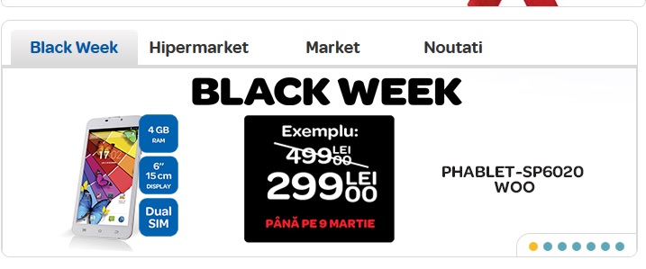 Din păcate pentru necunoscători, Carrefour continuă să comercializeze acest smartphone denumit Phablet Woo la un preţ dezastruos de mare: 499 lei. Dar cum weekendul acesta a fost dedicat zilei femeii, Carrefour s-a gândit să pună acest device la „reducere”. Până pe 9 martie puteţi găsi acest produs „revoluţionar” la preţul de 299 lei.